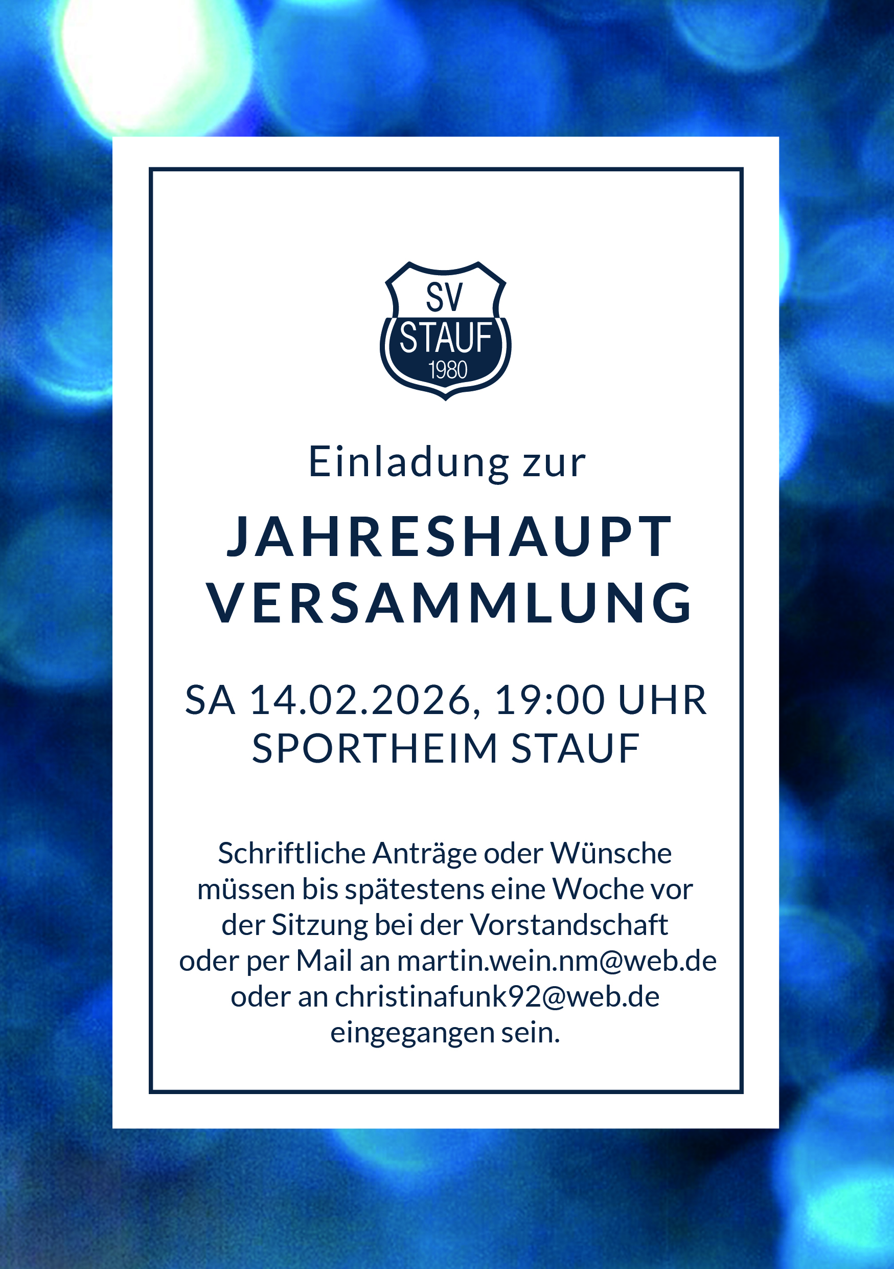 Jahreshauptversammlung mit Neuwahlen Sa, 14.02.2026